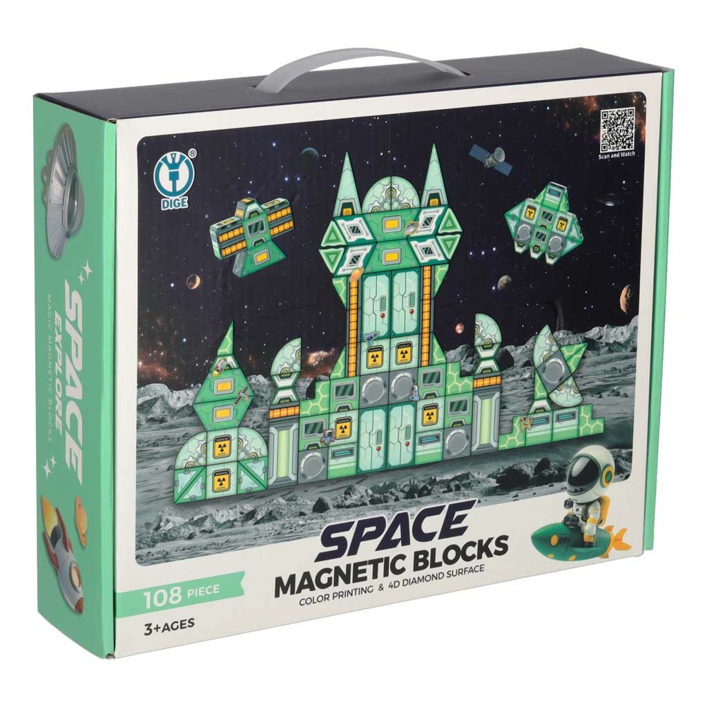 Scopri infinite possibilità creative con il set di costruzioni magnetiche a tema spazio. Con 108 pezzi di forme diverse e stampe, costruirai edifici futuristici, robot e stazioni. Il gioco supporta l’apprendimento STEM, sviluppa creatività, immaginazione spaziale e motricità fine. I magneti potenti garantiscono connessioni stabili e i pannelli traslucidi con grafiche d’effetto donano a ogni costruzione un look cosmico.