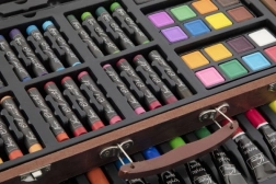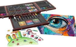 Set artistico completo in un’elegante valigetta di legno per artisti principianti e avanzati. Contiene un’ampia selezione di strumenti per disegno e pittura per dare vita alle tue idee. Include colori acrilici, acquerelli, pastelli a secco e a olio, matite colorate e in grafite, pennelli e altri indispensabili – tutto organizzato in modo chiaro e facile da trasportare.