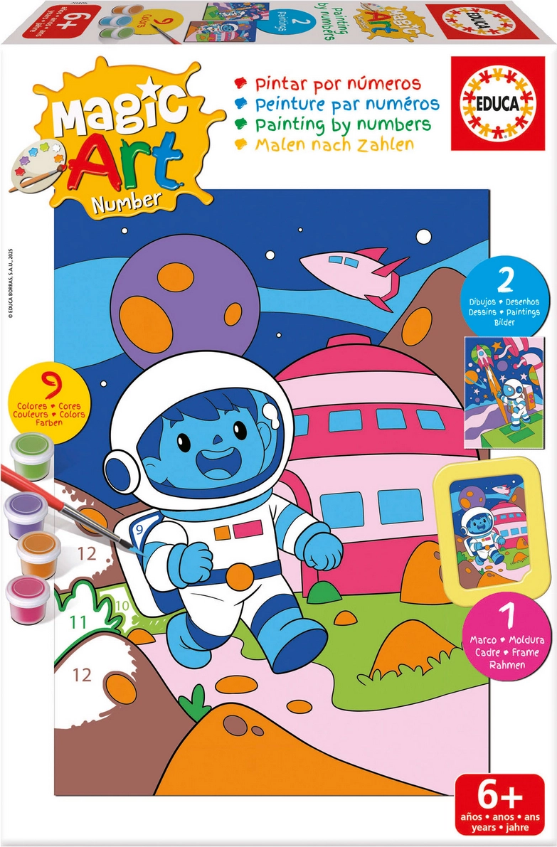 Scopri un set creativo rilassante per piccoli e grandi – Dipingi con i numeri: Spazio di EDUCA. Grazie alle sezioni numerate sul modello, creare il quadro è facile e divertente. Questo set sviluppa concentrazione, motricità fine e riconoscimento dei colori, offrendo al contempo una sensazione immediata di successo.