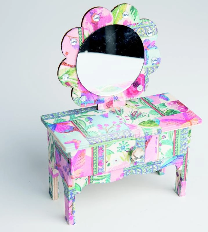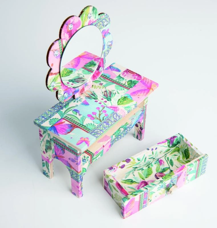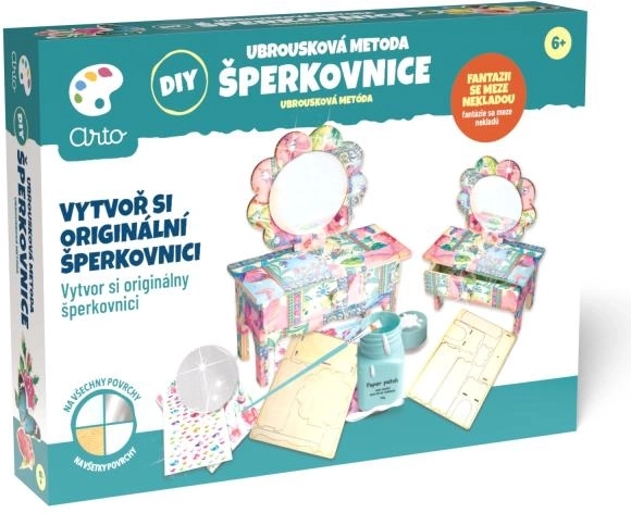 Monta un elegante portagioie a forma di piccolo tavolino da toeletta e decoralo con la popolare tecnica del tovagliolo. Il set ARTO offre un procedimento semplice, dal montaggio alla decorazione finale, così potrai goderti sia il piacere della creazione sia un risultato bellissimo.
