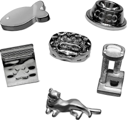 - tabellone, 6 pedine da collezione, carte e banconote di gioco (a seconda dell’edizione)