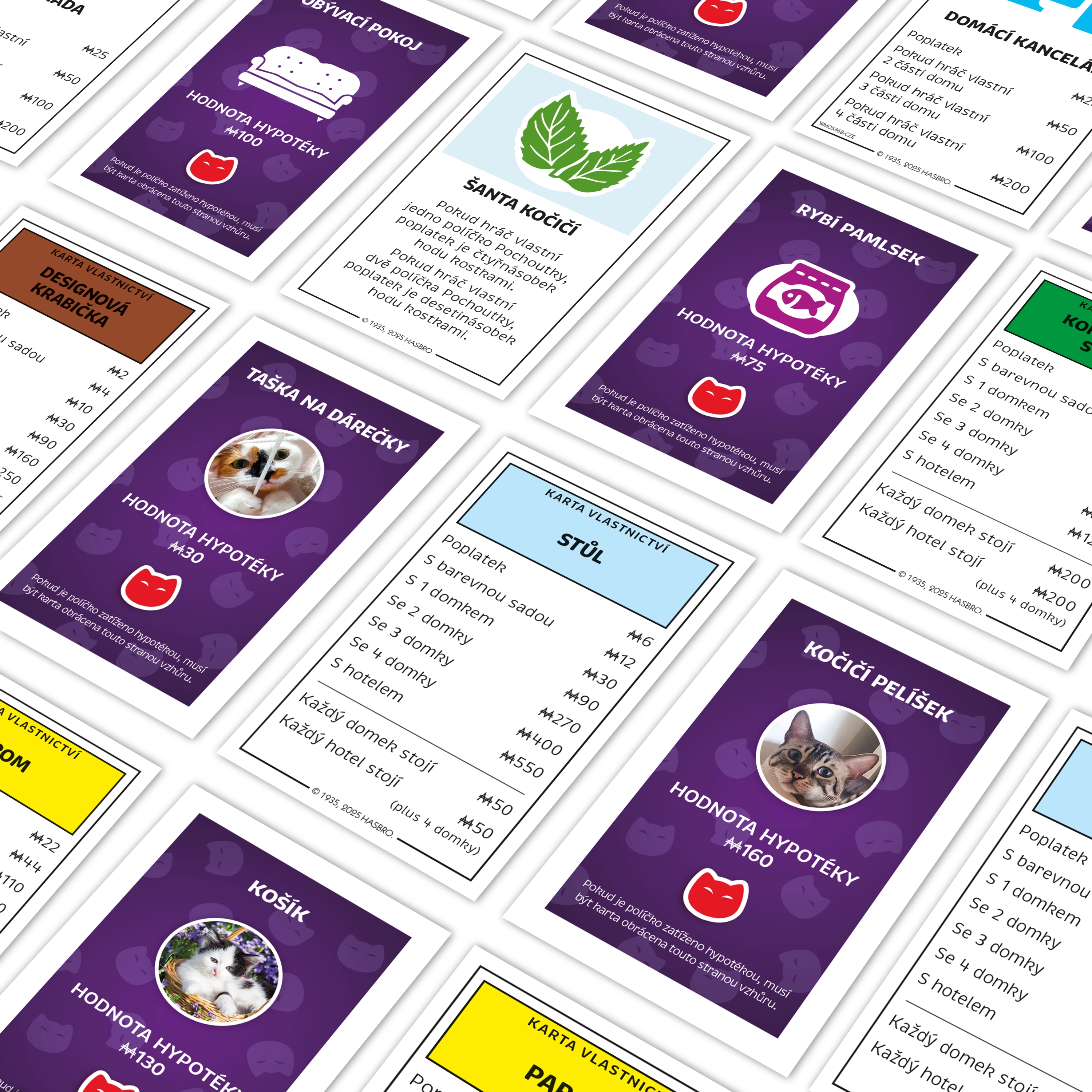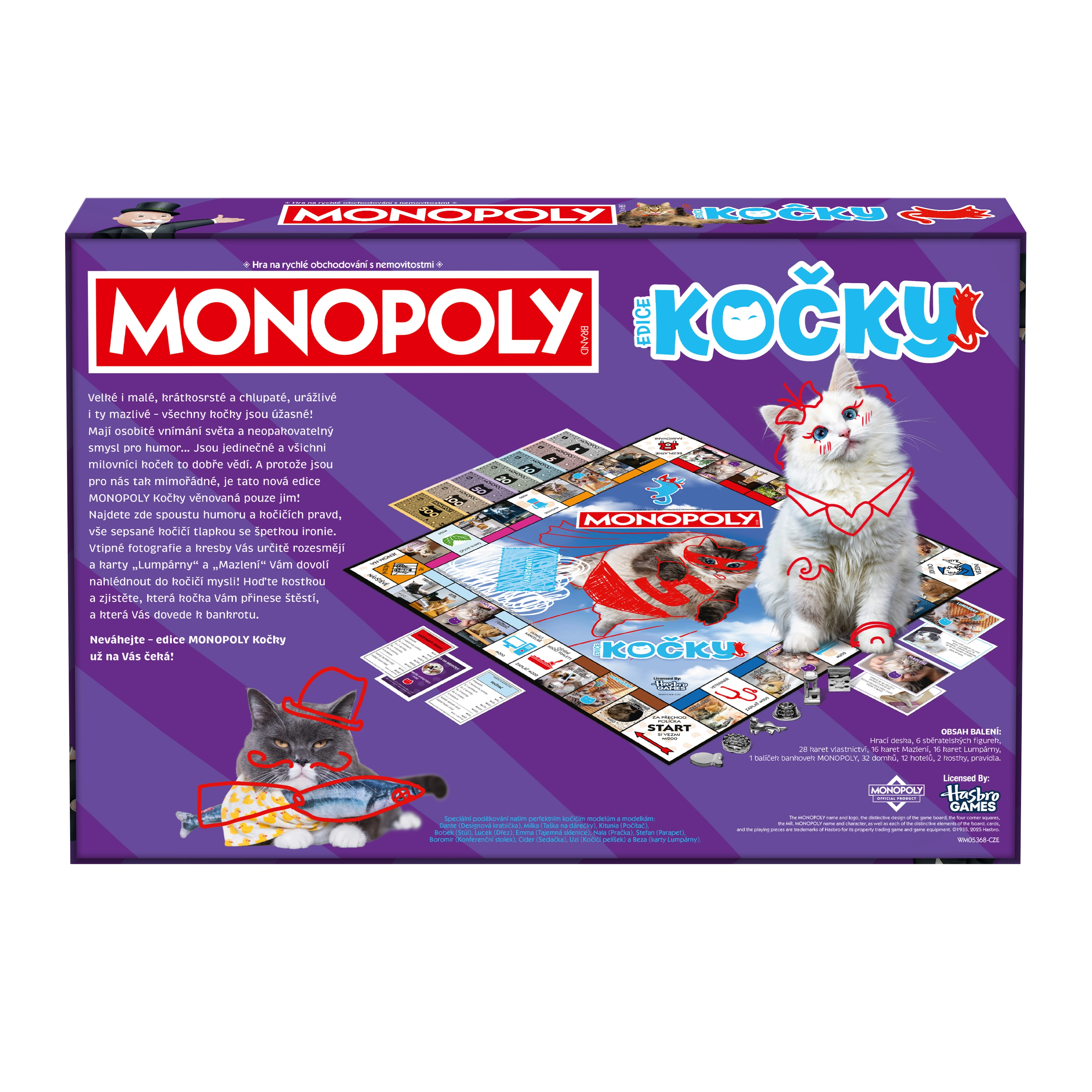 Entra in un mondo giocoso dominato dai gatti. Questa nuova edizione ceca di MONOPOLY: Gatti unisce la classica strategia commerciale a verità feline tanto adorabili quanto birichine. Goditi momenti unici con amici o famiglia e scopri un tabellone pieno di riferimenti ai caratteri dei gatti – dai coccoloni ai suscettibili.