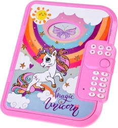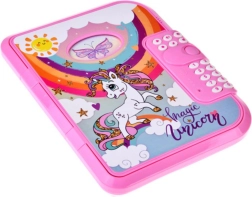 Questo diario rosa con magico motivo unicorno è ideale per i bambini che vogliono tenere al sicuro i propri pensieri e tesori. Si apre inserendo un PIN a 4 cifre, così gli appunti restano solo per i veri proprietari. Grazie al coach vocale in inglese l'uso è intuitivo e divertente.