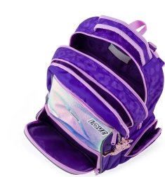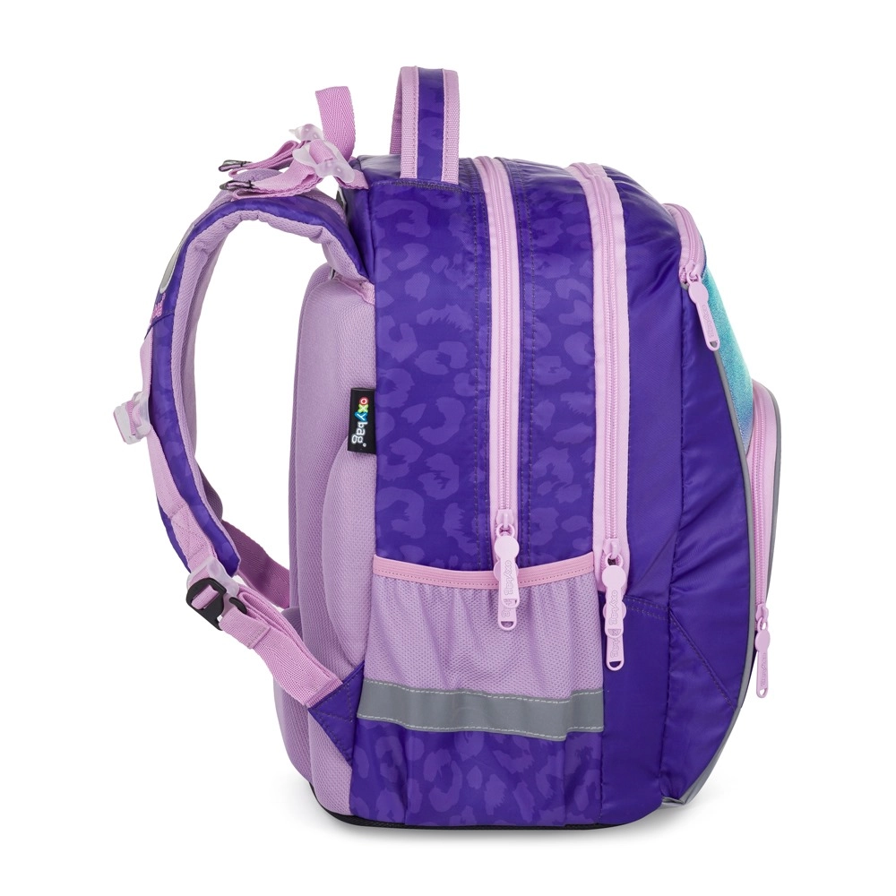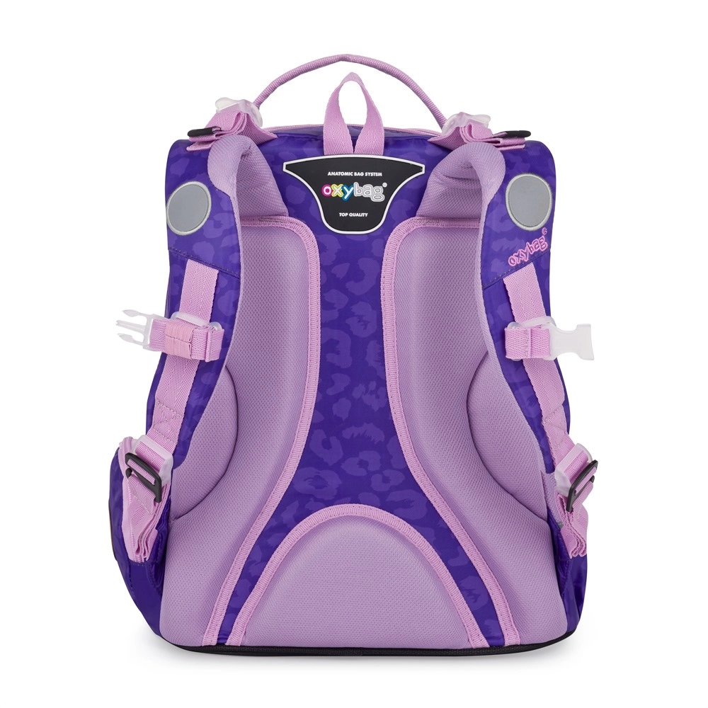 Lo zaino OXY GO Fashion, stiloso e funzionale, colpisce per design e praticità. Offre due ampi scomparti principali per libri e quaderni, una tasca frontale per gli oggetti piccoli e due tasche laterali (una aperta per la borraccia e una con chiusura a zip). Il pannello posteriore imbottito e traspirante e gli spallacci ergonomici e regolabili garantiscono un trasporto confortevole per tutta la giornata scolastica.