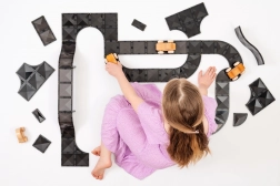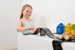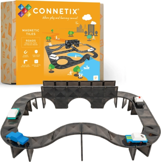 Il set Connetix Roads Creative Pack offre pezzi stradali trasparenti e robusti in un’elegante tonalità scura, che si incastrano senza sforzo grazie ai potenti magneti al neodimio. I bambini possono costruire rampe, curve, incroci e ponti e farci correre macchinine in legno. Durante il gioco allenano in modo naturale il pensiero logico, la motricità e le basi di fisica e geometria.