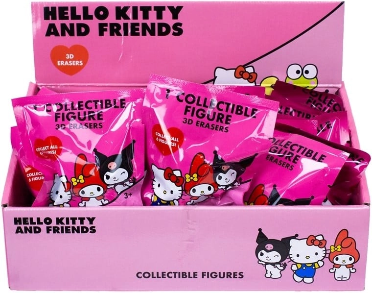 Queste gomme 3D con motivi di Hello Kitty & Friends portano la magia di Sanrio nella scrittura quotidiana. Ogni blind bag contiene una gomma di qualità con un bellissimo design 3D, che farà felici sia gli scolari sia i collezionisti. Grazie alle dimensioni compatte, entra perfettamente nell’astuccio e rende più piacevole ogni ora di lezione.