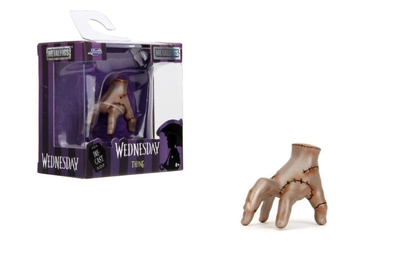 Nella collezione troverai Wednesday in due outfit iconici, l’amica Enid con uniforme scolastica blu e la misteriosa Mano – un mix ideale per fan e collezionisti.
