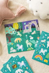 Questo set giocoso porta i bambini in un mondo incantato, dove possono comporre scene con unicorni, arcobaleni, funghi, un gufo e altri amici del bosco. Gli adesivi si applicano e si rimuovono facilmente, così possono tornare alle storie preferite tutte le volte che vogliono.