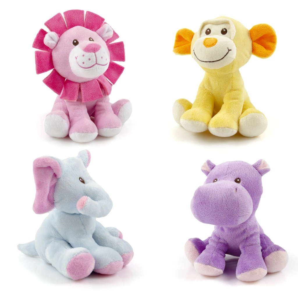 Leone rosa, elefante blu, scimmietta gialla e ippopotamo viola – scegliete un preferito o componete l’intera squadra della giungla.