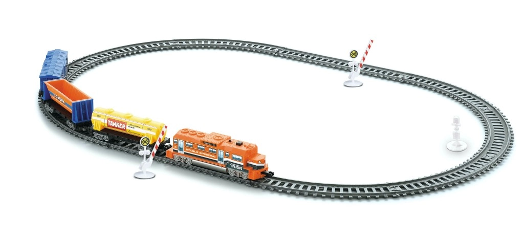 Il set include 17 pezzi con una lunghezza totale del tracciato di 170 cm e dimensioni del circuito montato di 45 × 65 cm. Il giocattolo supporta lo sviluppo del pensiero logico, della creatività e della coordinazione occhio–mano, introducendo in modo divertente i bambini alle basi del trasporto ferroviario e della meccanica.