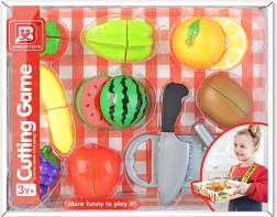 Il set include un pratico tagliere e un sicuro coltello in plastica, grazie ai quali i bambini possono giocare in sicurezza a cucinare e preparare i pasti. Il gioco sviluppa naturalmente la motricità fine, la coordinazione occhio–mano e favorisce l’apprendimento di colori e forme.