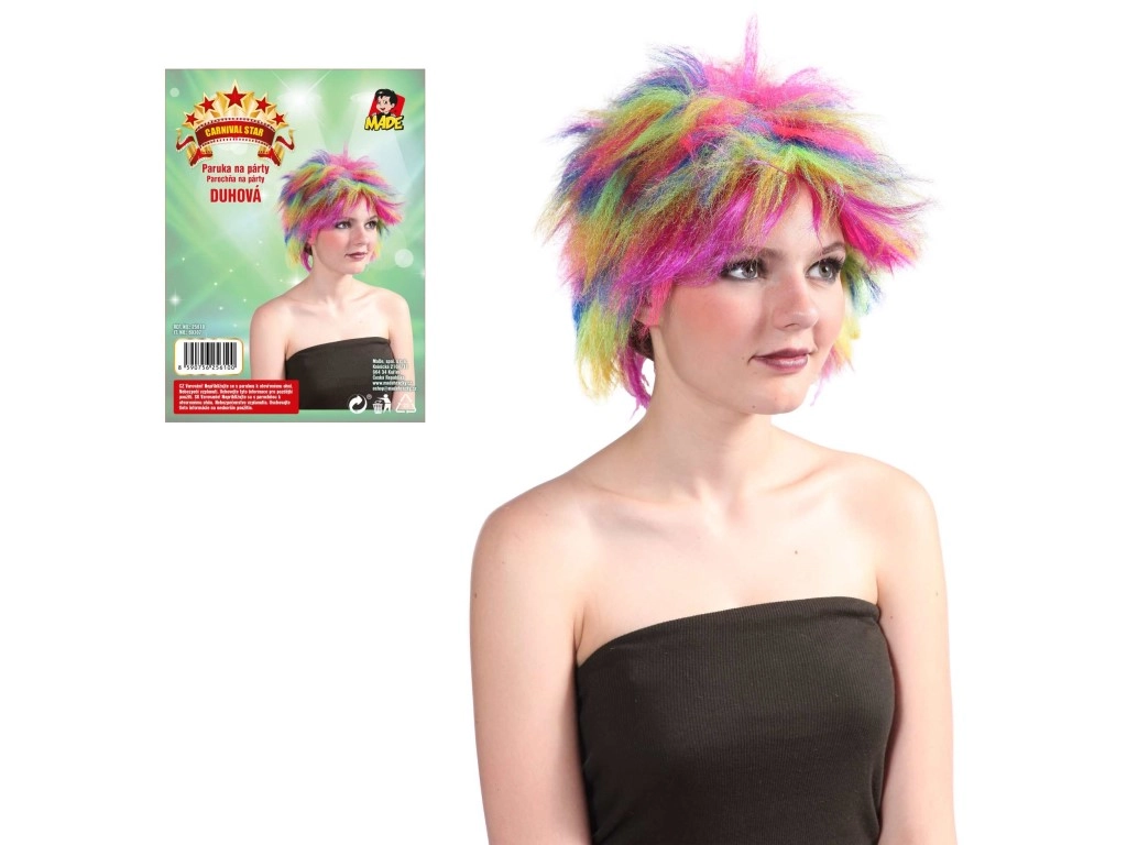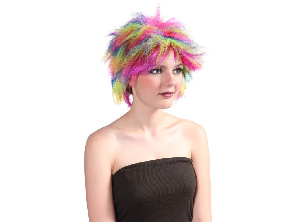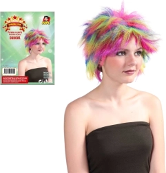 Questa parrucca colorata Multicolor è un ottimo accessorio per carnevali, feste e party a tema. Grazie al materiale resistente, la forma e i colori restano vividi e la parrucca è facile da indossare e togliere.