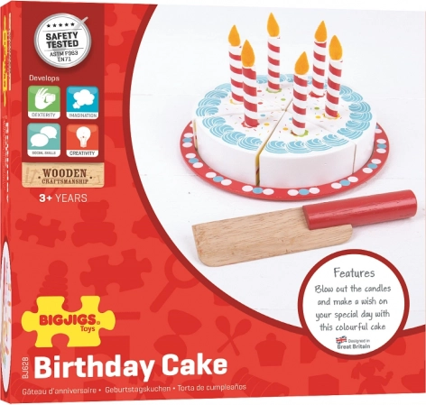 Scopri la magia della festa con la nostra torta di compleanno in legno da tagliare di Bigjigs Toys. Questo giocattolo è ideale per i piccoli bambini che apprendono il mondo intorno a loro attraverso giochi divertenti e interattivi. La torta è sufficientemente grande per un gruppetto di sei giocattoli e include anche un coltello di legno per facilitare il taglio.