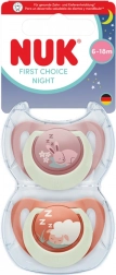 I ciucci NUK First Choice Night sono stati sviluppati per una suzione naturale e un sano sviluppo del cavo orale. La forma ortodontica offre spazio sufficiente alla lingua e riduce la pressione su gengive e denti. La zona morbida è piacevole al tatto e si adatta al palato, rendendo il ciuccio confortevole anche durante un uso prolungato.
