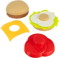 I pezzi di burger e hot dog possono essere stratificati e cambiati a piacere: i bambini esercitano la motricità fine e la creatività costruendo il “menu perfetto”.
