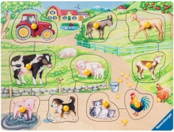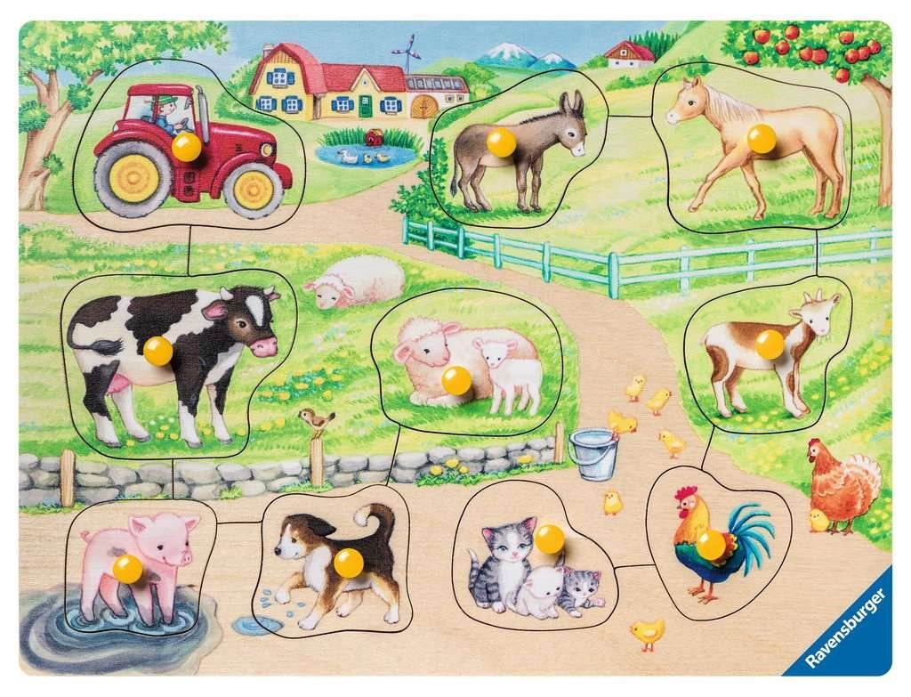 Il puzzle in legno a incastro Ravensburger della linea I miei primi puzzle in legno porta ai bambini la gioia di imparare giocando. Dieci pezzi robusti con motivi della fattoria illustrati con amore aiutano a sviluppare abilità chiave e favoriscono una corretta presa grazie alle maniglie in plastica su ogni pezzo.