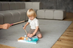 La pesca magnetica del brand CUBIKA è un amato gioco da tavolo per piccoli pescatori. I bambini, con due canne in legno con magnete, pescano pesciolini con piastrina metallica, allenando precisione, pazienza e collaborazione. I colori pastello e i pezzi in legno levigati garantiscono un’esperienza di gioco piacevole e sicura.