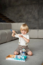Il set è prodotto in Europa con acero e faggio di qualità, utilizzando vernici all’acqua atossiche. Il prodotto è conforme alla norma EN 71 e certificato TÜV. Ideale come gioco educativo per lo sviluppo di senso-motricità, creatività e fantasia.