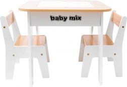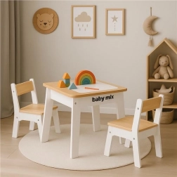Il pratico set per bambini BABY MIX Leaf Natural offre il luogo ideale per creare, disegnare e giocare ogni giorno. Struttura stabile, piano del tavolo rimovibile e vano portaoggetti sotto il piano aiutano a mantenere l’ordine e ad avere tutto a portata di mano. Due sedie comode, bordature arrotondate per la sicurezza e montaggio facile rendono questo set un ottimo complemento per la cameretta e l’angolo giochi.