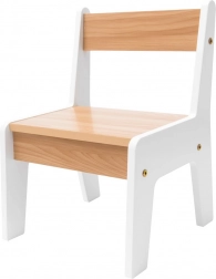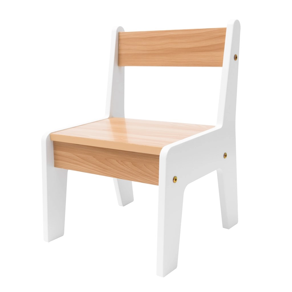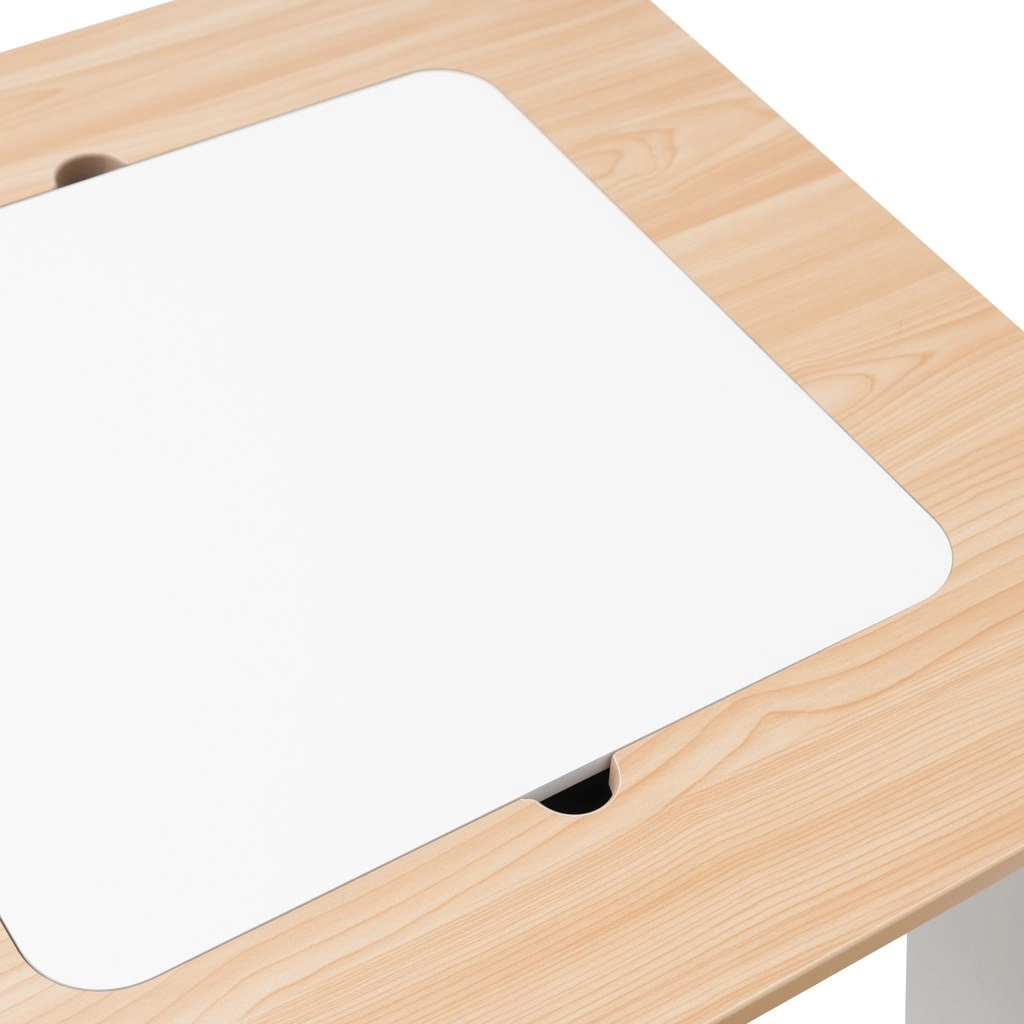 Il design minimalista, che combina legno naturale e bianco, si inserisce facilmente negli interni moderni. Le sedie progettate ergonomicamente aiutano a mantenere la giusta altezza di seduta al tavolo e favoriscono concentrazione e abitudini sane durante le attività creative.
