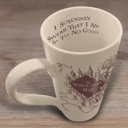 Scopri i segreti di Hogwarts con un’elegante tazza ispirata alla leggendaria Mappa del Malandrino. Il corpo alto in ceramica con base beige tenue e grafica marrone scuro dettagliata ti garantisce di gustare la tua bevanda preferita con grande stile. All’interno del bordo troverai l’iconica frase “I solemnly swear that I am up to no good”, che piacerà a ogni appassionato.