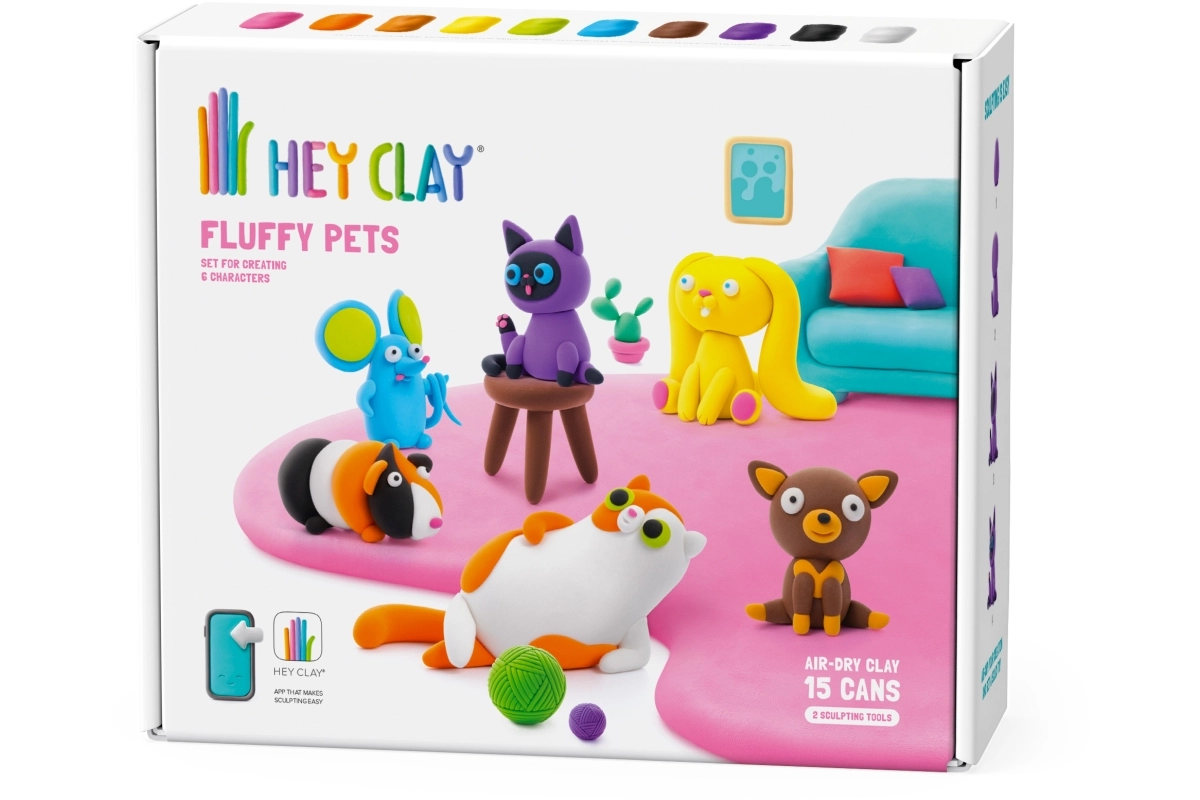 Scopri il divertimento con il set creativo Hey Clay Fluffy Pets – confezione con 15 vasetti di pasta leggera, profumata e autoindurente, con cui i bambini possono creare facilmente dolcissimi animaletti passo dopo passo. Grazie all'app gratuita Hey Clay (iOS/Android) con codice incluso per sbloccare le istruzioni, potranno realizzare 6 figure: 2 cagnolini, 2 gattini, un porcellino d’India e un topolino. I modelli finiti asciugano all’aria, diventano duri e pronti per nuovi giochi. Età 3+.