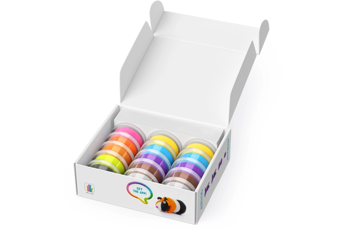 - 15 vasetti di pasta da modellare, codice di accesso all’app HEY CLAY