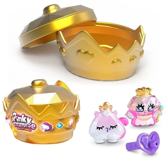 Scopri la magia della collezione Pinky Promise Gemmy Friends! Nella elegante scatolina a forma di corona troverai 2 adorabili figure e un anello su cui è possibile inserire le figure e cambiarle liberamente. Crea combinazioni infinite e goditi oltre 80 varianti diverse per giocare e da indossare.