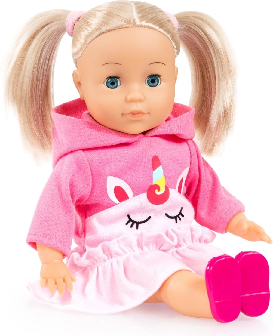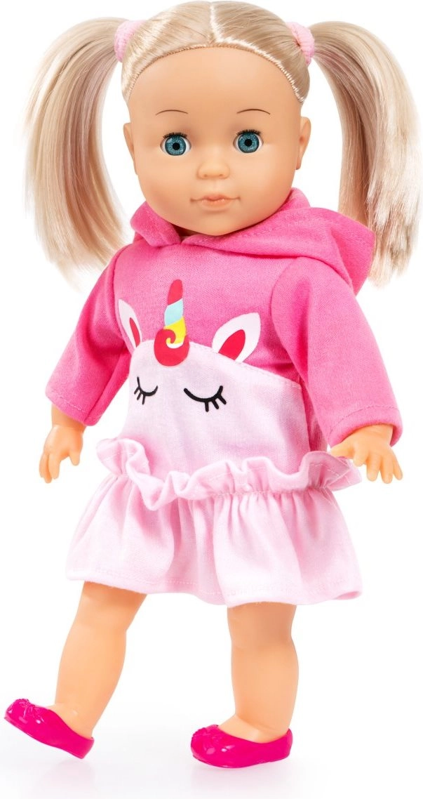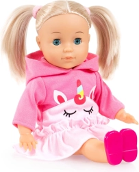 La dolce bambola Emma con lunghi capelli biondi e corpo morbido offre ai bambini ore di divertimento e apprendimento. Premendo il pancino parla in ceco, canta e recita fino a 100 frasi. Grazie alla funzione degli occhi che si chiudono va a dormire insieme al bambino. La confezione include pettine e mollette colorate per creare acconciature. Ideale per giochi di ruolo, coccole e sviluppo della fantasia. Le batterie AAA sono incluse.