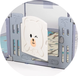 Il pratico box per bambini Amico in elegante colore grigio offre ai piccoli uno spazio sicuro per giocare e riposare. Dispone di sportellino robusto con motivo adorabile, pareti in rete traspirante per migliore visibilità e circolazione dell’aria e struttura rinforzata per la stabilità. È facile da montare, semplice da mantenere e include 2 anelli di sostegno per supportare i primi tentativi di stare in piedi.