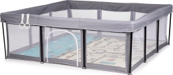 Pratico e sicuro box per bambini in elegante colore grigio, offre ampio spazio per gioco e riposo. Grazie ai pannelli in rete traspirante, alla porticina laterale con cerniera e al robusto telaio in metallo avrai sempre piena visibilità e sicurezza. È leggero e facile da montare e nella confezione trovi anche 2 anelli di supporto per allenare la stazione eretta.