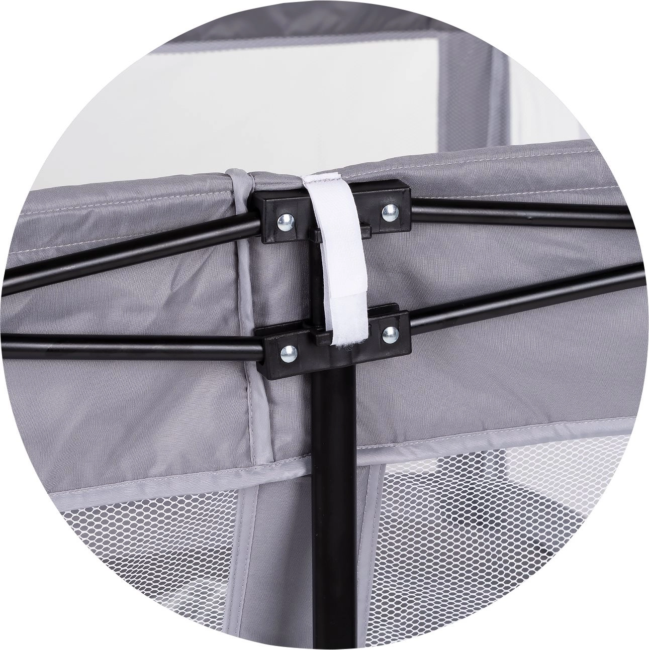 La resistente struttura in metallo con giunzioni solide e antiscivolo mantiene il box saldamente in posizione anche durante il gioco attivo.