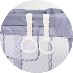 Il box CHIPOLINO Laguna Grey è progettato per il gioco quotidiano e i momenti di riposo. Grazie all’ampia superficie, i bambini hanno spazio sufficiente per gattonare, esplorare e giocare, mentre i genitori apprezzano la facile sorveglianza tramite la rete traspirante. Lo sportellino laterale con zip consente al bambino di entrare e uscire in modo sicuro e autonomo.