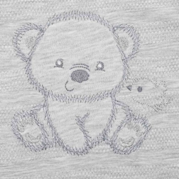 Questo elegante set per neonato è progettato per il massimo comfort e per facilitare sia il cambio che la vestizione. Grazie al pregiato jersey di cotone, il set è traspirante, morbido e delicato sulla pelle sensibile del bambino. Il design grigio neutro con delicato ricamo di orsetto e uccellino è adatto sia a bambine che a bambini.