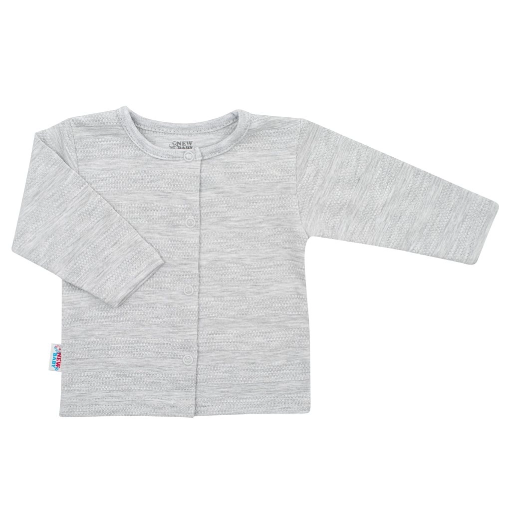 Il morbido cardigan grigio con chiusura lungo tutta la lunghezza è ideale per la sovrapposizione e mantiene il bimbo al caldo senza doverlo vestire passando dalla testa.