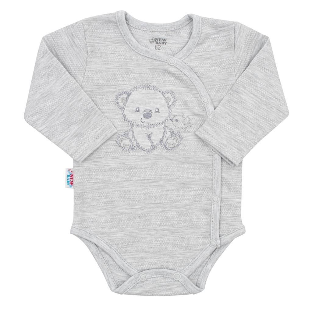 Il completo da maternità New Baby Sweet Bear da 4 pezzi in elegante colore grigio offre tutto ciò di cui il neonato ha bisogno fin dai primi giorni. Include un body a maniche lunghe completamente apribile, una salopette con piedini, un morbido cardigan e un cappellino con lacci. Realizzato in 100% cotone delicato sulla pelle sensibile del bambino, con una dolce ricamo di orsetto e una pratica chiusura a bottoncini a pressione.