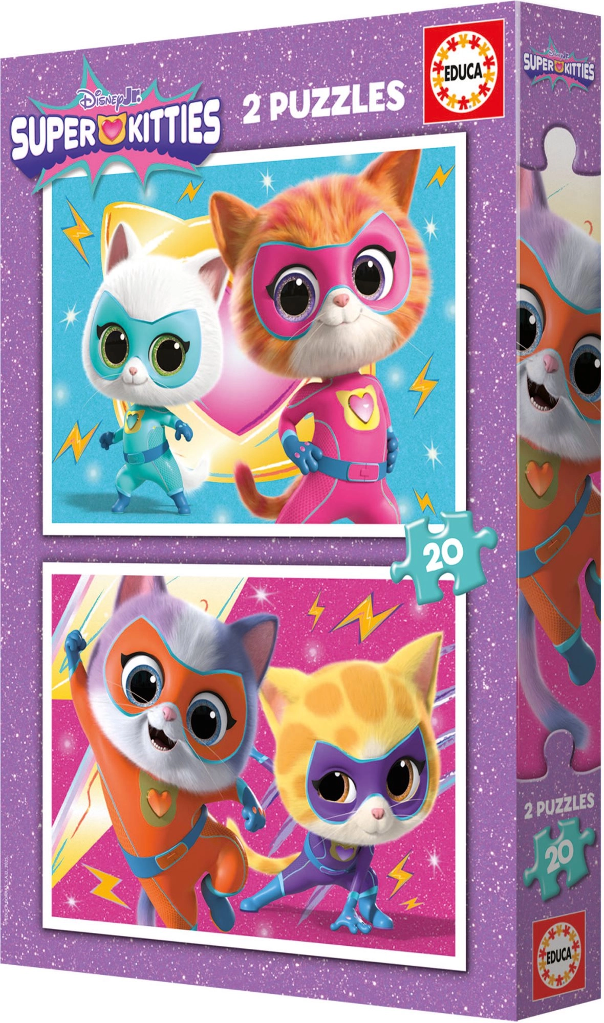 Scopri la magia dei puzzle con gli eroi della serie Super Kitties. La confezione include due puzzle separati con lo stesso numero di pezzi e lo stesso formato finale. Grazie ai 20 pezzi per puzzle, sono ideali per i bambini che desiderano migliorare la concentrazione e la motricità fine.