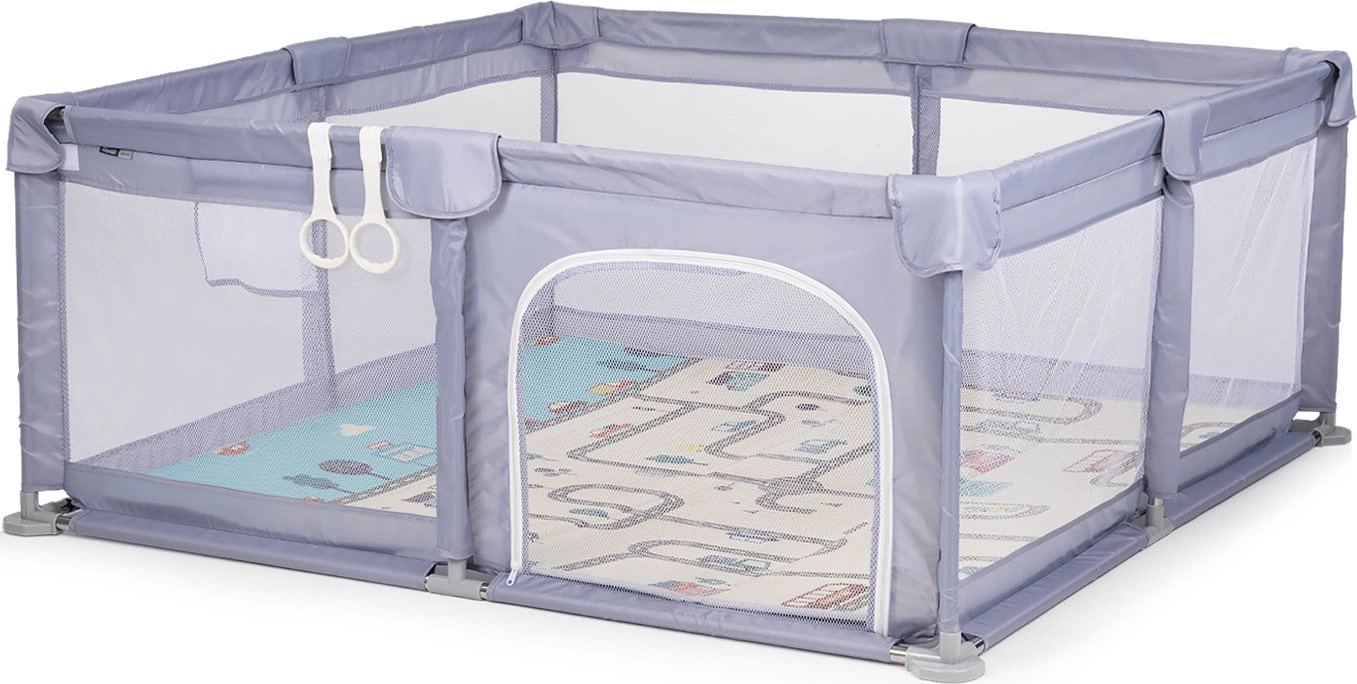 Box per bambini pratico e sicuro per il gioco quotidiano e il riposo. Offre un design quadrato spazioso, sportellino laterale con zip per un facile accesso, pannelli in rete traspirante e telaio rinforzato con morbida imbottitura. Inclusi 2 anelli di supporto per allenare l’alzata in piedi. Conforme alla norma EN 12227:2010.