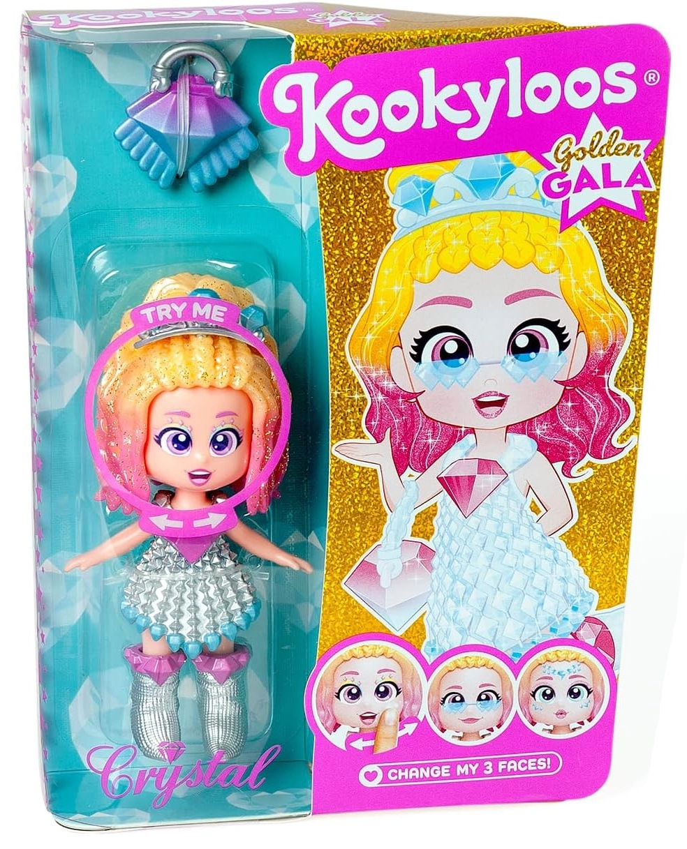 La figurina KookyLoos Crystal Golden Gala unisce uno stile festoso e giocoso a dettagli accuratamente realizzati. Grazie alla funzione unica di cambio espressione del viso, i bambini possono alternare facilmente gli stati d’animo e creare storie originali. L’outfit elegante, l’acconciatura e gli accessori sono in perfetta armonia con il tema del gala.