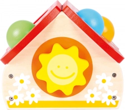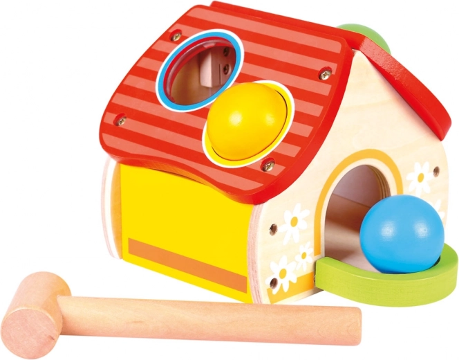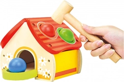 Questo giocattolo in legno di qualità, a forma di allegra casetta, conquista i bambini con colori vivaci e un meccanismo di gioco semplice: le palline si inseriscono nei fori sul tetto e si martellano delicatamente con il martello. Il divertimento favorisce sviluppo motorio, pazienza e precisione.