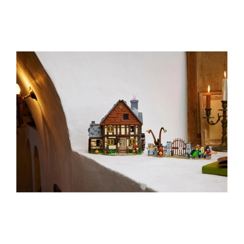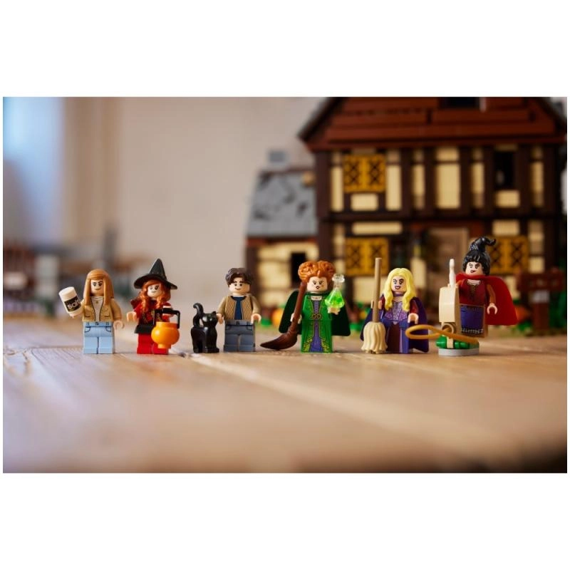 Scopri l’iconica capanna del film Disney Hocus Pocus in un set altamente dettagliato per fan e collezionisti. Il modello si apre in vari modi per un facile accesso agli interni: troverai il negozio del museo, la camera delle streghe piena di pipistrelli e il calderone con mattoncino luminoso LEGO che illumina il fuoco dal basso. Non mancano il Libro degli Incantesimi, una stanza laterale per imprigionare Dani e una ruota idrica funzionante con camino da cui, girando, “sale” fumo rosa.