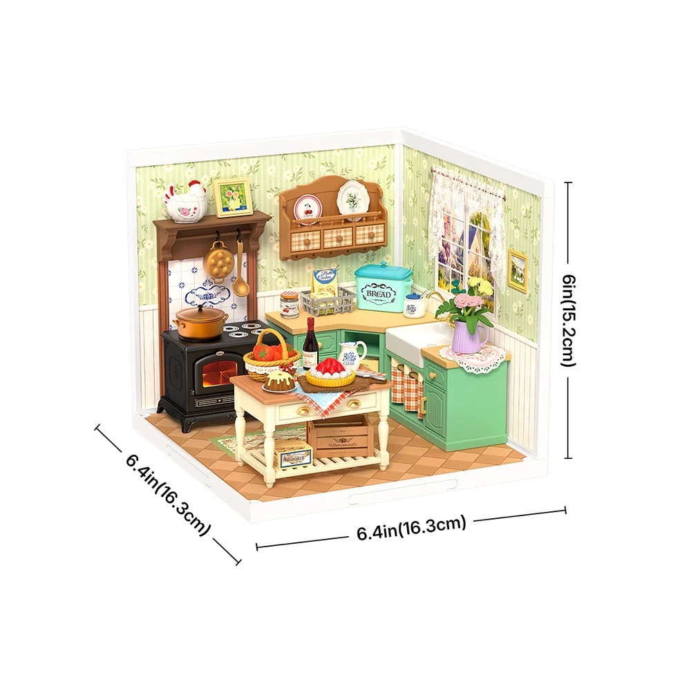 Scopri un mondo di dettagli e comfort in miniatura. Questo preciso set DIY ti guida nella costruzione di una cucina di campagna con fornello, lavello, isola e tanti accessori realistici. Grazie alla luce LED risalta ogni elemento d’arredo e decorazione, e il modello finito diventa un’elegante aggiunta alla libreria o all’angolo di lavoro.