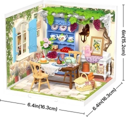Scopri il fascino delle miniature con una veranda dettagliata, ricca di arredi, accessori e piante. Elementi trasparenti e luci LED creano un’atmosfera unica, grazie alla quale il tuo modello spicca di giorno e di notte. L’assemblaggio è intuitivo: i pezzi tagliati con precisione si incastrano senza bisogno di colla o utensili speciali.