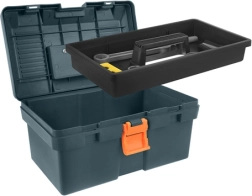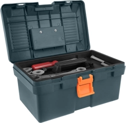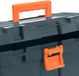 Il box in plastica resistente con inserto organizzatore mantiene tutti i pezzi in ordine. Grazie alla maniglia e alla chiusura affidabile, il trasporto è facile e sicuro.