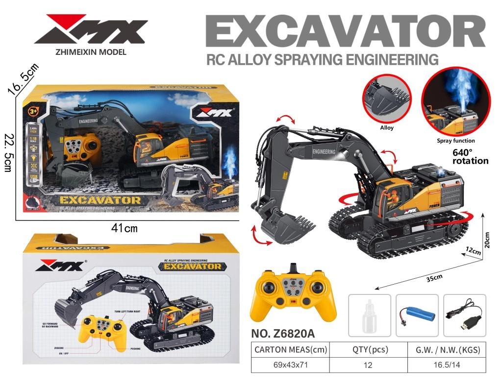 Escavatore RC con spray 1:18 con braccio in metallo e controllo 2,4 GHz