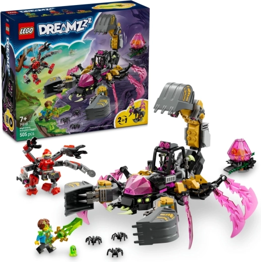 La scavatrice scorpione degli incubi LEGO DREAMZzz dà ai bambini la possibilità di scegliere: costruisci un minaccioso scorpione con grandi chele e una scavatrice sulla coda, oppure un’elegante vespa biomeccanica con ali di cristallo e pungiglione velenoso. Grazie ai vistosi “cristalli” rosa trasparenti, il modello colpisce al primo sguardo e invita al gioco d’azione.