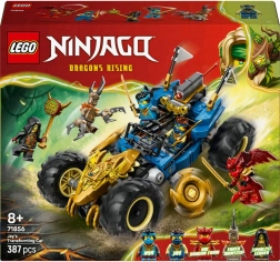 Il set include 387 pezzi che sviluppano creatività, motricità fine e immaginazione. Il modello si riconfigura facilmente in modalità drago: la parte frontale ruota trasformandosi in una testa di drago con copertura trasparente, i lati sono impreziositi da shuriken rotanti e l’intera auto ha un look dinamico grazie alle grandi ruote e agli accenti dorati.