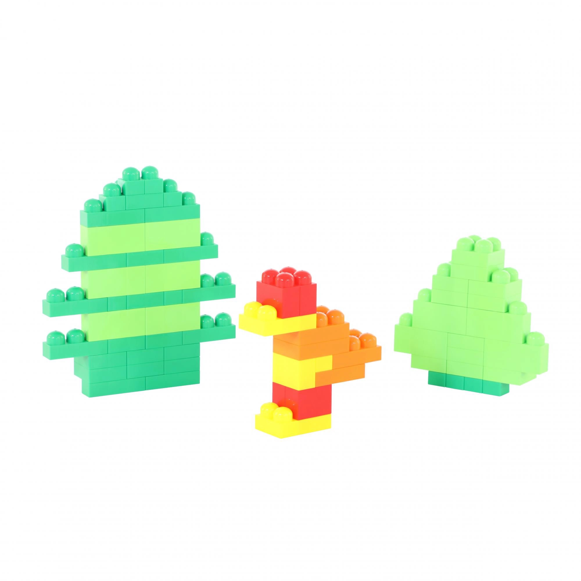 Con i mattoncini dai colori vivaci, i bambini possono creare facilmente modelli semplici: alberelli e simpatiche figurine. Stimola l’immaginazione e il gioco narrativo.