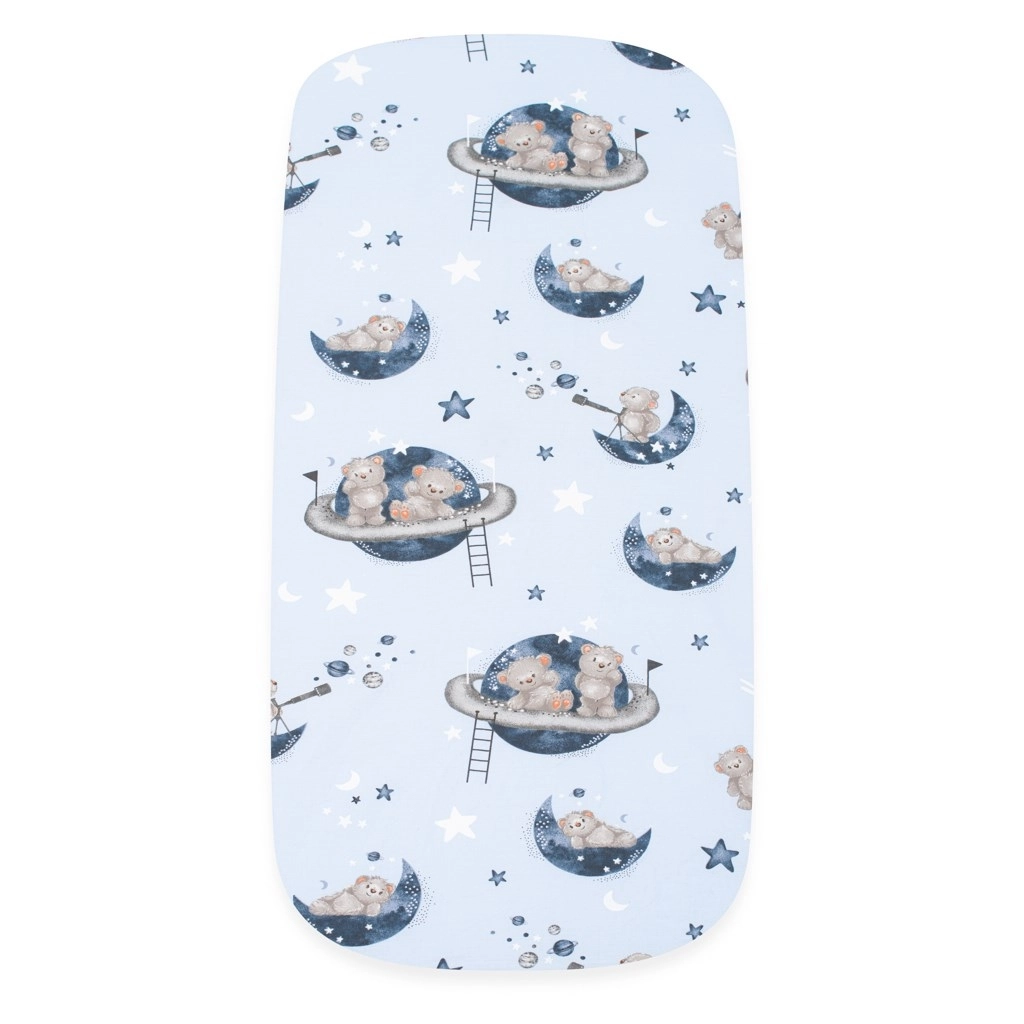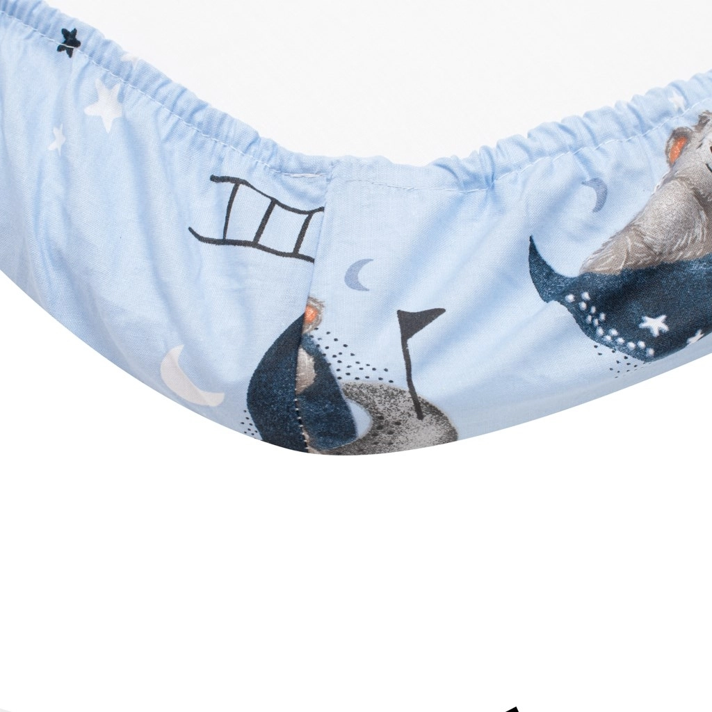 Il lenzuolo in cotone New Baby Teddy Bear in Space è realizzato in cotone tessuto liscio, molto piacevole al tatto e non irritante per la pelle sensibile dei bambini. Grazie all’elastico cucito tutto intorno, il lenzuolo si applica facilmente, rimane ben fermo e si tende in modo uniforme sull’intera superficie del materasso.