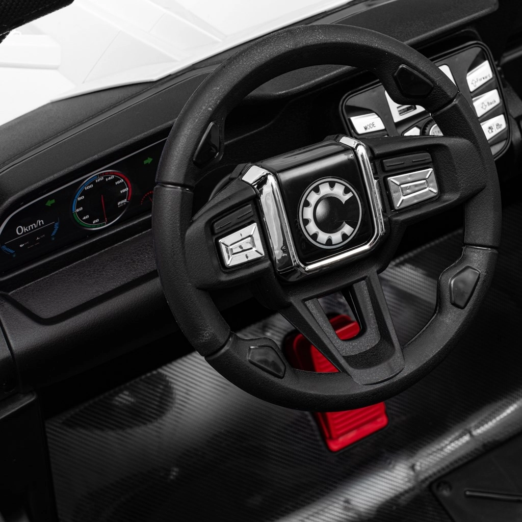 La macchinina elettrica Baby Mix Road 4x4 è la scelta ideale per i bambini che amano le avventure fuoristrada. La struttura robusta, le grandi ruote in schiuma EVA e quattro motori indipendenti offrono prestazioni fluide e stabili su diverse superfici. Grazie ai fari LED anteriori e ai catarifrangenti posteriori, la guida è sia attraente che chiara.